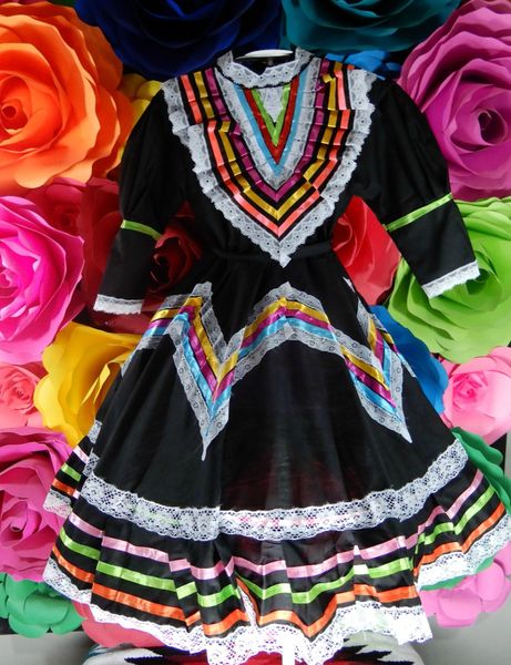 Mexican dress for kids, girls dress mexican style costume traditional jalisco dresses xmas gift.